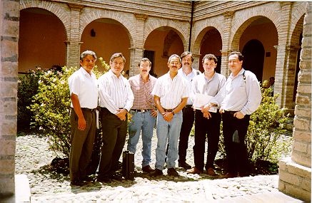 De izquierda a derecha: Beau Flores (UNI), Raúl Pérez (ITESM), Álvaro Rendón (U. Cauca), Adolfo Plazas (U. Cauca), Omar Barreneche (UMROU), José Ramón Arias (U. Oviedo), y Manuel J. Fernández (U. Vigo)
